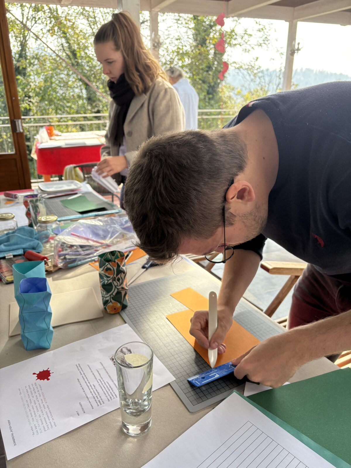 Bevor das wunderschöne Anwesen im Mondoví leider verkauft wird, bieten wir noch zum letzen Mal unsere Kreativferien an diesem traumhaften Ort an. Unter dem Glasdach unseres Ateliers wird gedruckt, experimentiert und gefaltet. Wir spielen mit Tusche und Farbe, tauchen ein in die Welt der japanischen Faltkunst und lassen Muster, Formen und Ideen sprühen. Ganz ohne gestalterische Vorkenntnisse – einfach ausprobieren, staunen und Freude haben.